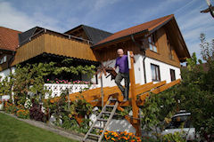 Um unser Haus gibt es 12 Weinstöcke, über 60 Dahlien und einen großen Gemüsegarten. Da ist der Hausherr in seinem Element! Selbstverständlich können Sie frischen Salat oder saftig-reife Tomaten bei uns bekommen.
